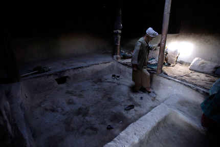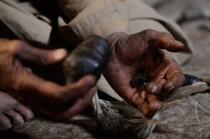 Sarab village resident and opium addict Islam Beg puts away what’s left of his stash of opium