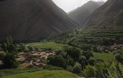 Morning sun lights up the village of Sarab nestled in a narrow river valley at 8,000 feet above sea level in the Badakhshan province of Afghanistan. In Sarab, with a population of 1,850, nearly half the people are addicted, joining the 200,000 opium and heroin addicts in Afghanistan. Such addicts account for nearly 2 percent of the adult population