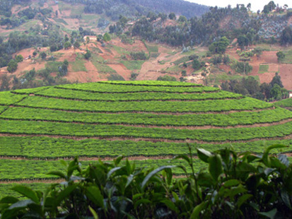 The Rwandan government hopes to encourage tea planting on highly erodible slopes because the crop—already a top export—holds the soil while providing cash to farmers. The Gishwati Area Conservation Program supports the planting of tea around the forest border because it also serves as a fence, keeping livestock out