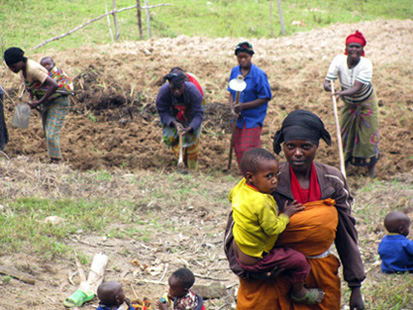Rwandans perform a lot of menial labor—often for $1 to $2 U.S. a day. Women frequently are seen with a baby on their backs and laundry or goods on their heads