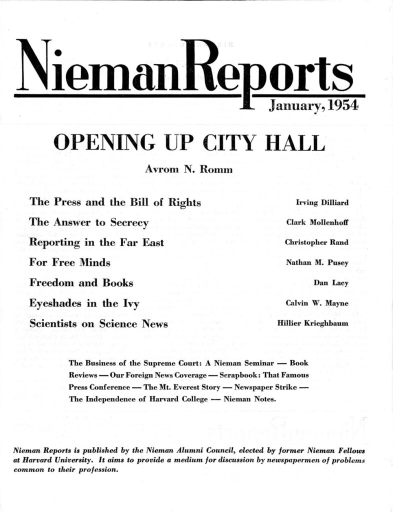 ISSUE Winter 1954 Opening Up City Hall Download PDF Articles Issue Winter 1954: Opening Up City Hall List of Articles January 1, 1954 Masthead Editor Louis M. Lyons