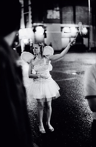 A young woman in a fairy outfit tries to wave down a taxi at 4 a.m. in the city center. Dublin 2006. Photo by Kenneth O’Halloran/Freelance