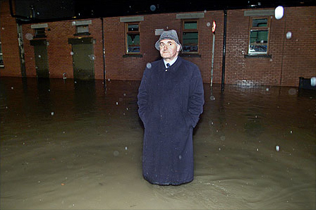 The Taoiseach Bertie Ahern surveys the floods after the river Tolka burst its banks in his Drumcondra, Dublin constituency in mid-November 2002. Photo by Colin Keegan/Collins Photo Agency