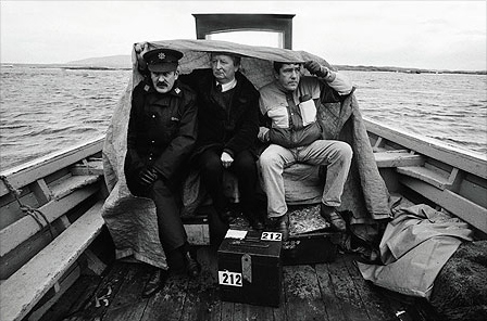 Garda Jim Brennan; David Alcorn, the presiding officer, and Donal ó Dufaigh, a radio reporter, return from Inishfree Island to Burtonport, County Donegal with the General Election ballot box, containing two votes, in November 1992. Photo by Frank Miller/The Irish Times