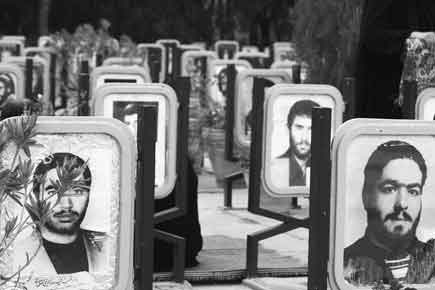 Dead soldiers look out of aging photographs in Golestan-e Shohada, a male-only martyrs cemetery in Isfahan