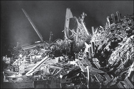 I spent the whole night by myself in this office looking out at this scene, at one of the biggest disasters of my lifetime, sitting by myself. It was an incredible experience of solitude, a chance to think. What struck me absolutely, sitting there at midnight, was looking at these rescuers. It’s cold, really windy, smoky. And I say to myself, “Look how many human beings, decent people, working-class people, have gotten out to do the right thing with their lives, to use their skills to help.” Welders were busting their butts to cut through beams. It was dangerous and dirty. Beams were flying through the air. I was so impressed by how quickly they were organizing themselves and using their skills to put wire around the beams and lift them up. I actually asked myself the question whether I had that kind of strength and courage. And I wasn’t sure, but I hope I do.