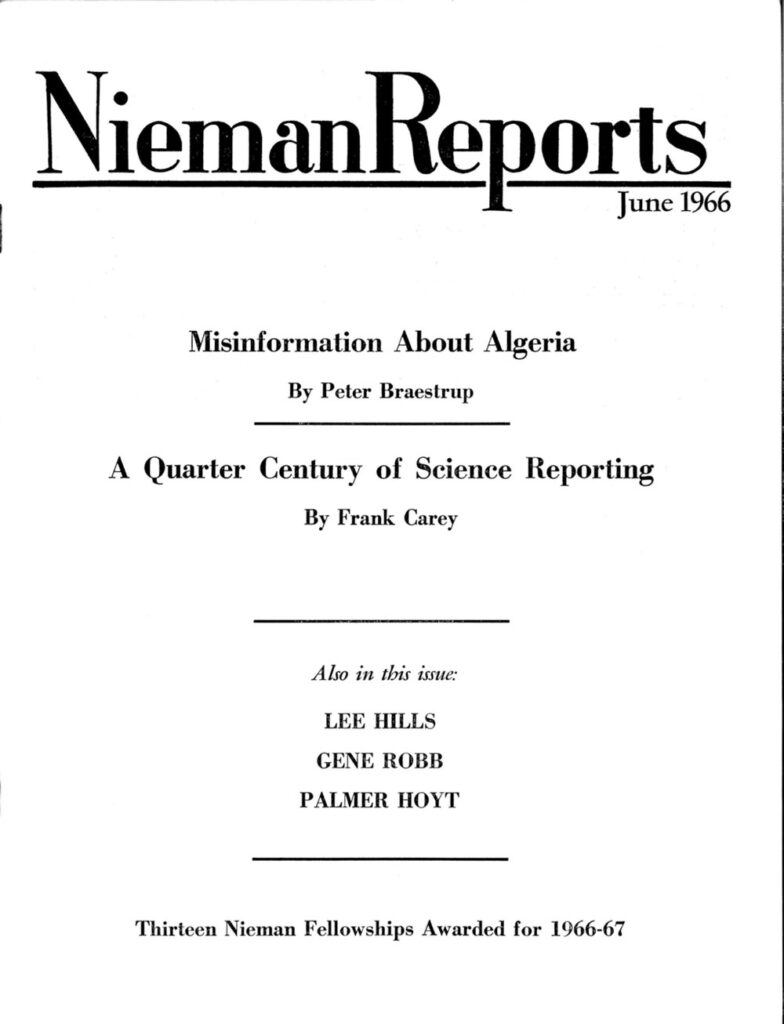 • “A Quarter Century of Science Reporting” by Frank Carey