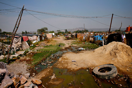 Raw sewage and garbage fill the pathways between shacks where migrants from the neighboring state of Zacatecas have formed a community of brick makers. The community, home to nearly 150 families, has no public services and no public education